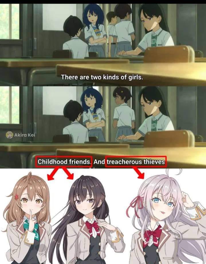I’m not sure what’s going on, but I have a strong feeling Alya is gaslighting the MC into thinking she was his childhood friend, when it was the 2 girls on the left.