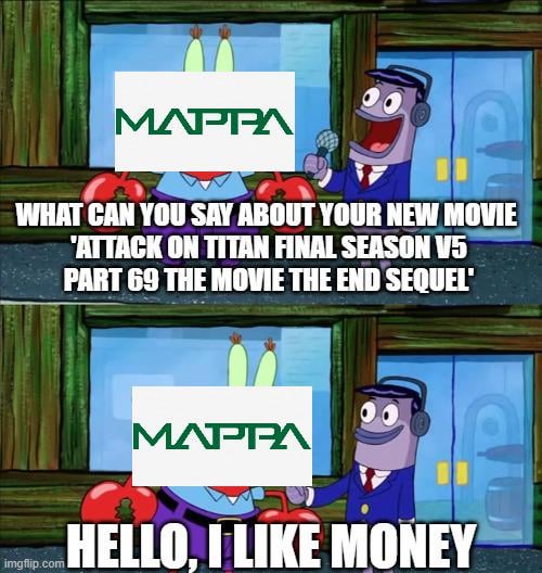 I honestly don’t get this argument, Demon slayer movies are worst at milking and everyone loves them. SnK didn’t even milk anything, just the naming scheme was wack but content wise, everything was adapted with no filler. MhA has like 7 season and no one’s saying it’s getting milked, cause it’s not.