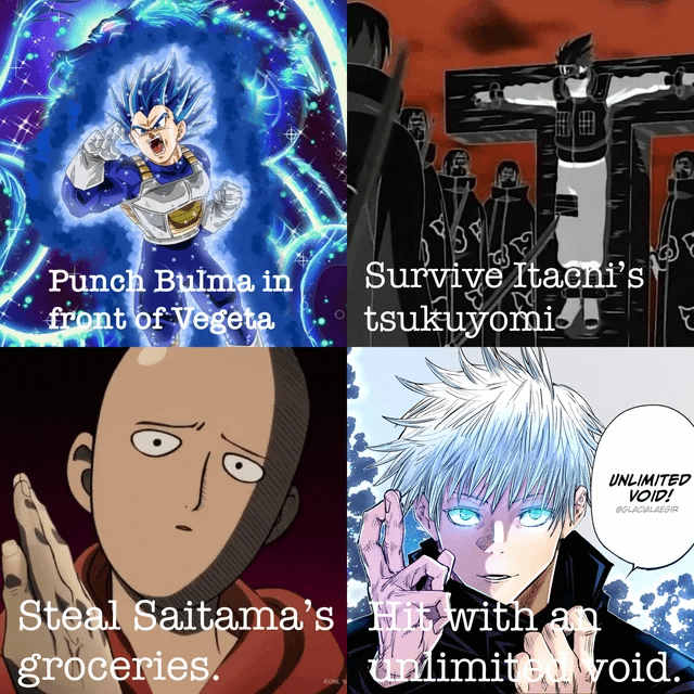 3. I mean, 2 are immediate deaths that being Vegeta and infinite void. One is mental torture, and for the untrained may as well be death. I’d go saitama because you will be able to play it off as a mistake and pay your way out of it. The other 3 kill as easy as breathing.