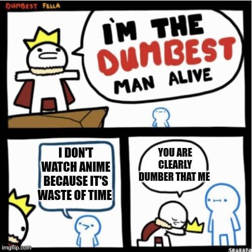 2. But he is right at some point. I’m not saying that anime is crap. But everyone spends their free time as they want. For example I won’t go fishing just because someone likes it and i will probably call fishing a waste of time but that’s just my personal opinion. for someone else it will be an interesting pastime