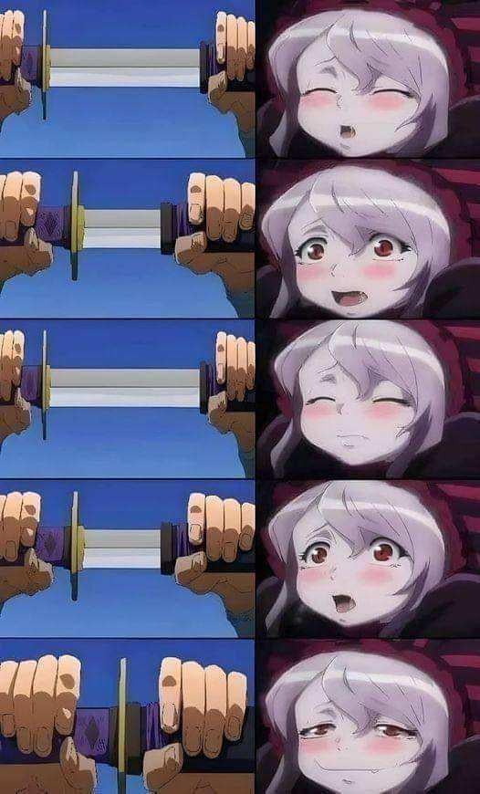 1. Context: As punishment for betraying her master under the influence of a high level mind control spell, Ainz decided that Shalltear would be his chair for the day (But the girl has some **major** thirst for bone daddy). And her face is caused after he got weirded out by her heavy breathing and intense response and almost got up before sitting back down