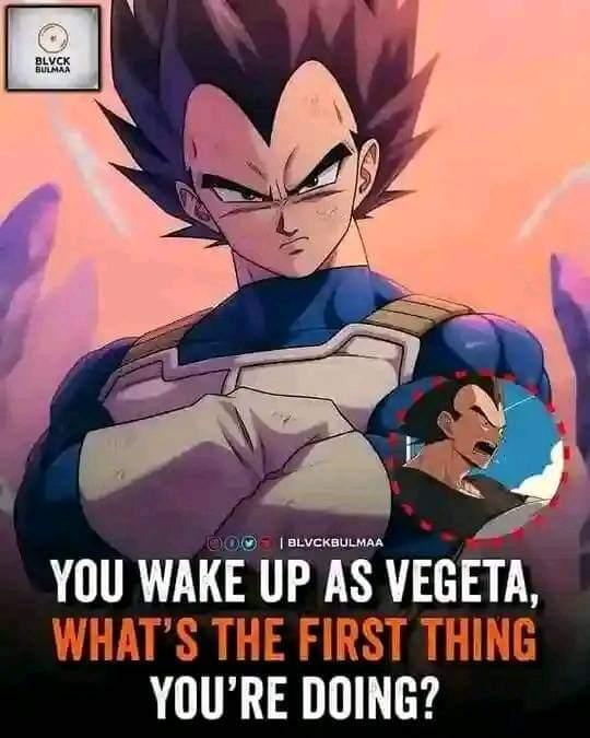 Be pissed that that dumb meme is reposted again and lunch Kakarot in the chunk for it. Then i laugh and do Bulma nasty.