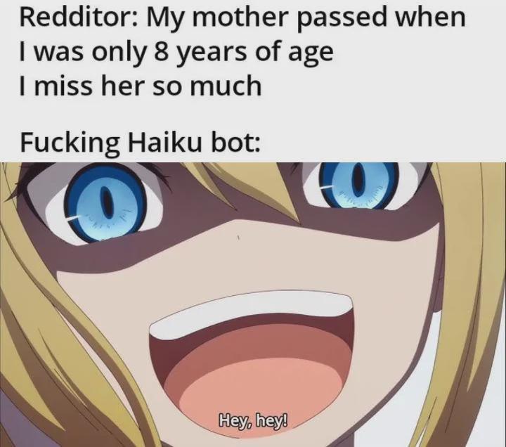 ChaosPLus on September 24, 2024 9:03 pm Ain’t there 1 syllable to much, thus invoking not the Haiku bot, but the Sokka Haiku bot?