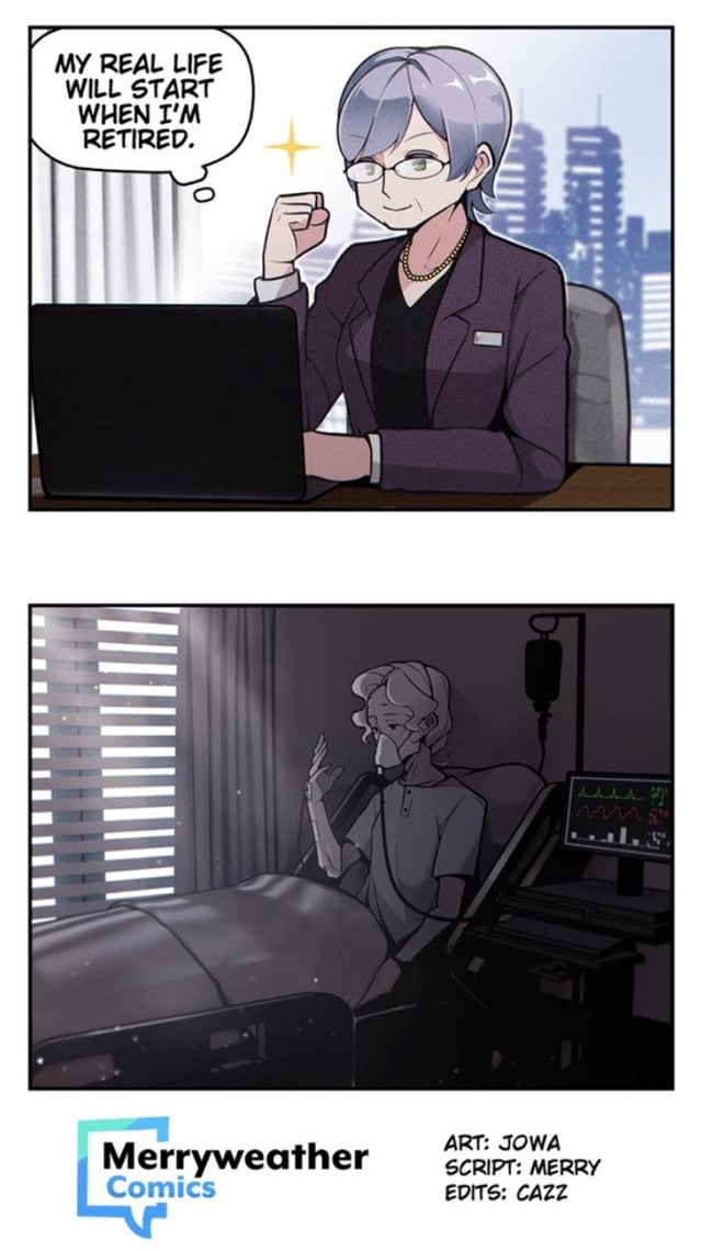 And though this comic portrays it, and it is a rather common phrase “life is short” it’s not always true in a way. While life may go by fast as long as your still living it you can do what you want. There is a song by Billy Joel a lot of you may know it’s called “Vienna” and the main message of that song is even though if your old your life isn’t over. Though this comic portrays old life as the end result and the end of her dreams it doesn’t have to be. Even when your old you may not be able to physically do everything that you want but you should still strive to do what you can.